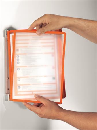 KezdőlapTechnológiaPrezentációAsztali és fali bemutatótáblákBemutatótábla tartó, fali, 5 db bemutatótáblával, DURABLE "VARIO® WALL 5", narancssárga