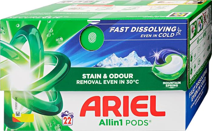 Az Ariel Allin1 rendkívüli tisztítóhatást nyújt, mindössze egyetlen apró kapszulába sűrítve. Az Ariel Allin1 PODS Mountain Spring mosókapszulák különleges, többrekeszes kialakítása stabilan, elkülönítve tárolja a hatóanyagokat a mosás kezdetéig, így szuperkoncentrált tisztítóhatást nyújtanak.